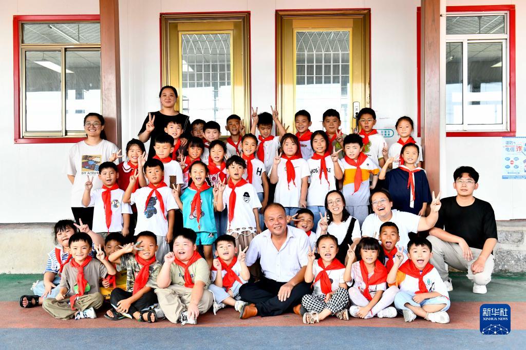 9月5日,在微山縣高樓鄉(xiāng)渭河小學(xué),師生合影留念。