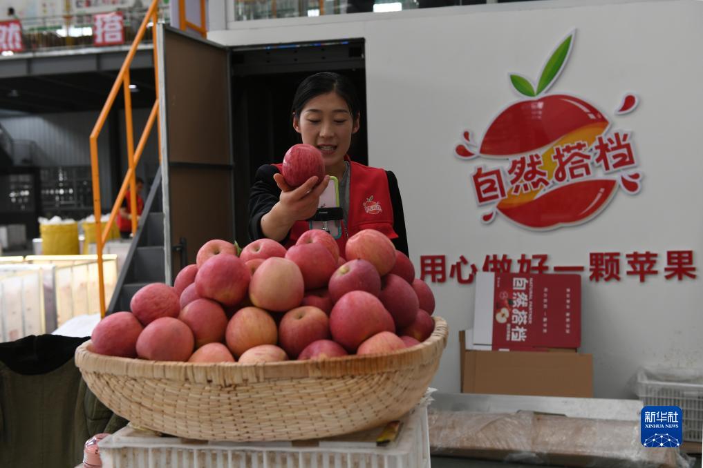 9月10日,工作人員在洛川蘋果現代產業園直播推薦洛川蘋果。