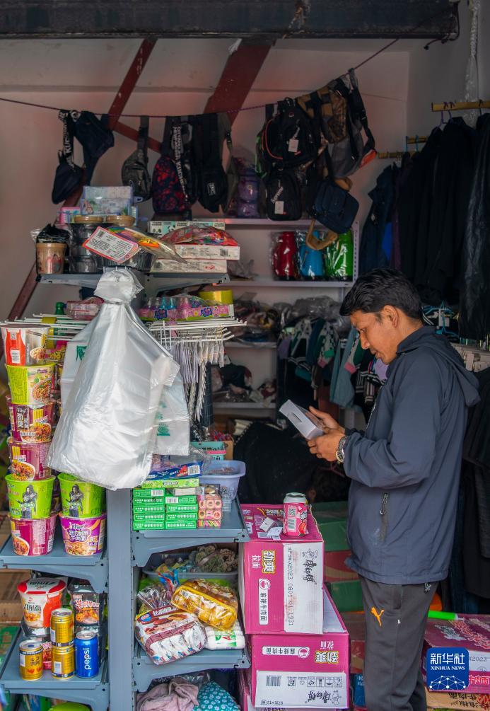 尼泊爾邊民在樟木口岸互市貿易市場選購商品(9月9日攝)。