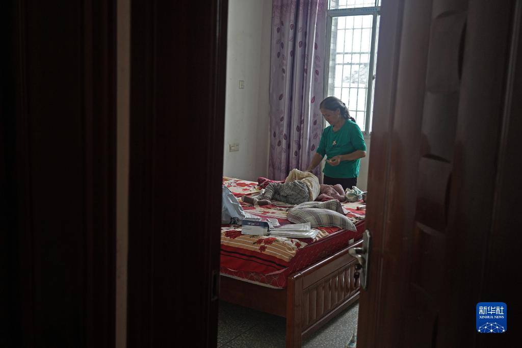 奶奶在家中用藥膏給小澤涂抹傷口(9月4日攝)。