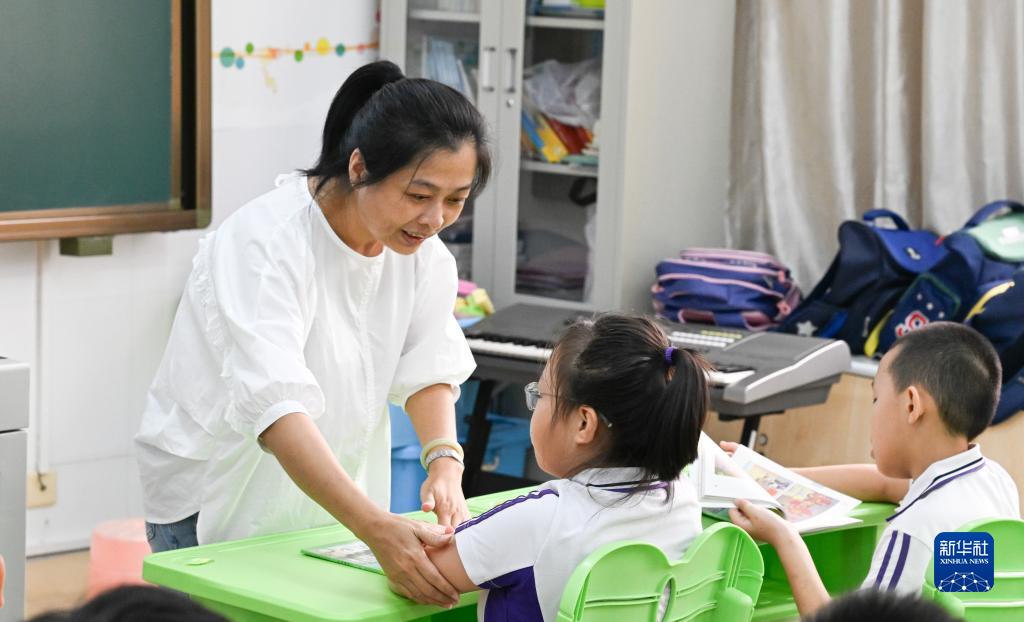 在海南(海口)特殊教育學(xué)校啟智三(1)班,班主任符堯惠為學(xué)生們上課(9月5日攝)。