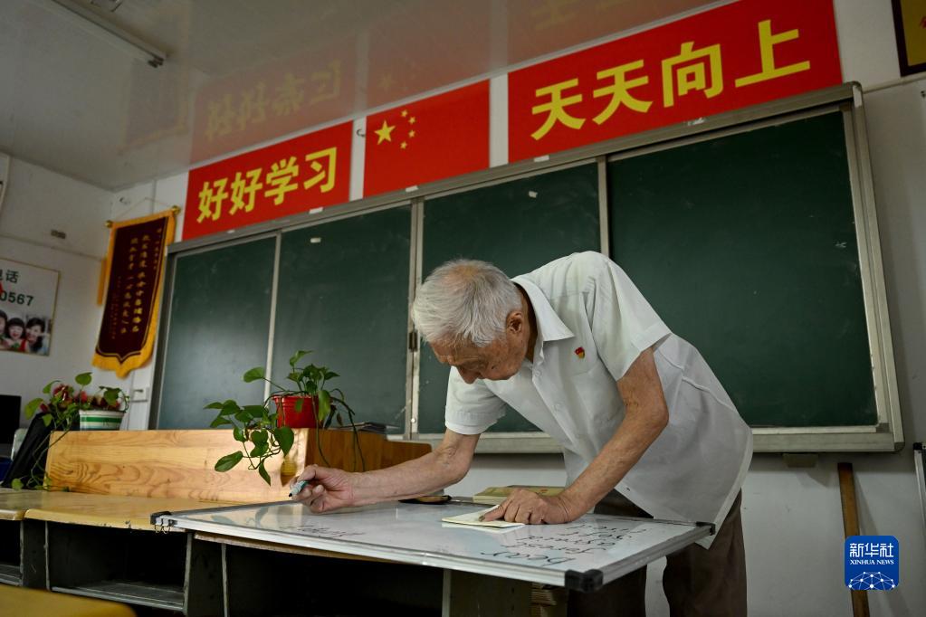 9月8日,在安徽省馬鞍山市和縣烏江鎮卜陳村的“留守未成年人之家”,葉連平在準備第二天的授課。