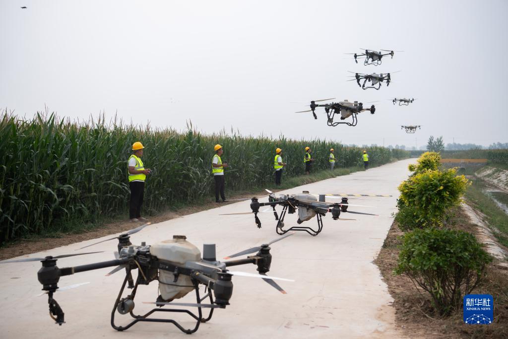 9月9日,樂陵市孔鎮鎮飛防作業社會化服務團隊在“噸半糧”核心區內進行飛防。