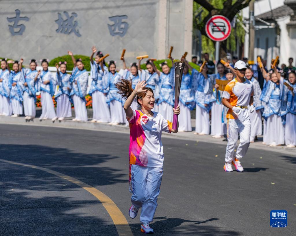 當日,杭州亞運會火炬在浙江省紹興傳遞。