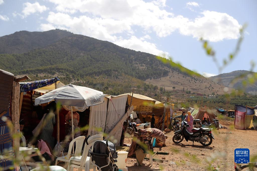 這是9月10日在摩洛哥震中附近的艾米茲米茲村拍攝的一處臨時安置點。