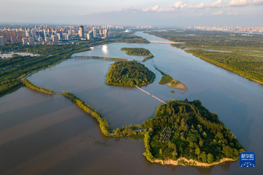 這是7月31日拍攝的太陽島西區(qū)一湖三島景觀(無人機(jī)照片)。