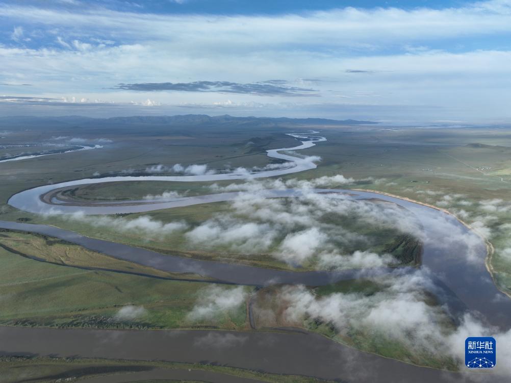 這是8月24日在四川省阿壩藏族羌族自治州若爾蓋縣唐克鎮(zhèn)拍攝的黃河九曲第一灣景色(無人機(jī)照片)。