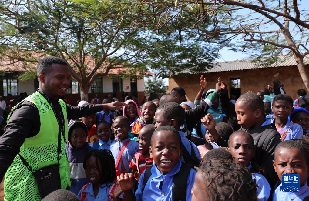 7月26日,在莫桑比克馬普托省戈巴村學校,瓜達吉亞與學生互動。