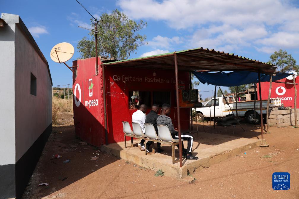 這是7月26日在莫桑比克馬普托省戈巴弗龍泰拉村拍攝的裝有中國援助的衛星電視接收天線的小賣部。