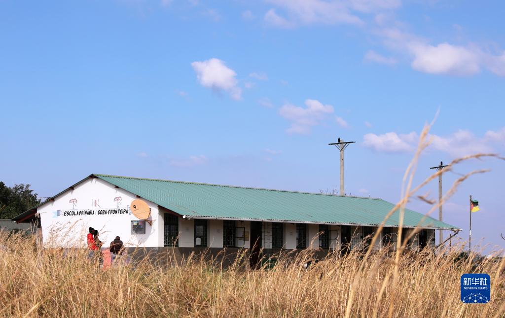 這是7月26日在莫桑比克馬普托省戈巴弗龍泰拉村拍攝的裝有中國援助的衛星電視接收天線的學校。