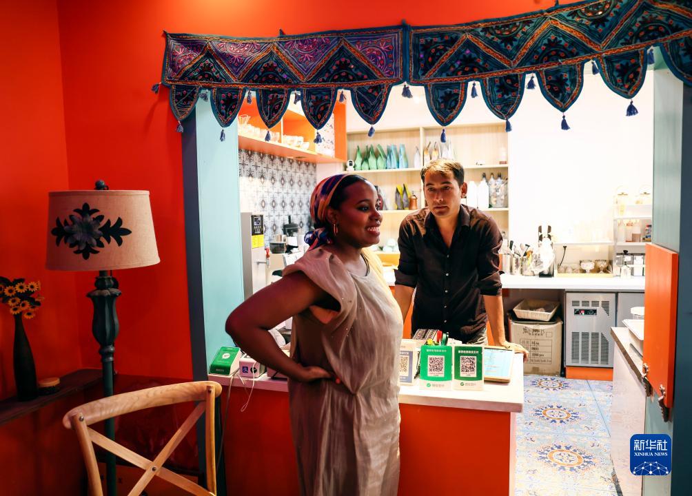 在新疆喀什古城蜿蜒曲折的巷道里,有一間溫馨的咖啡館總是吸引不少游客前來品嘗、打卡。這是新疆喀什小伙迪力夏提·吐爾遜和坦桑尼亞姑娘海迪雅經(jīng)營的名為“迪力和迪雅”的咖啡館。