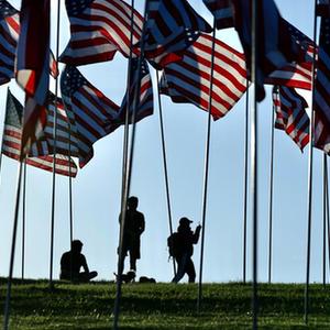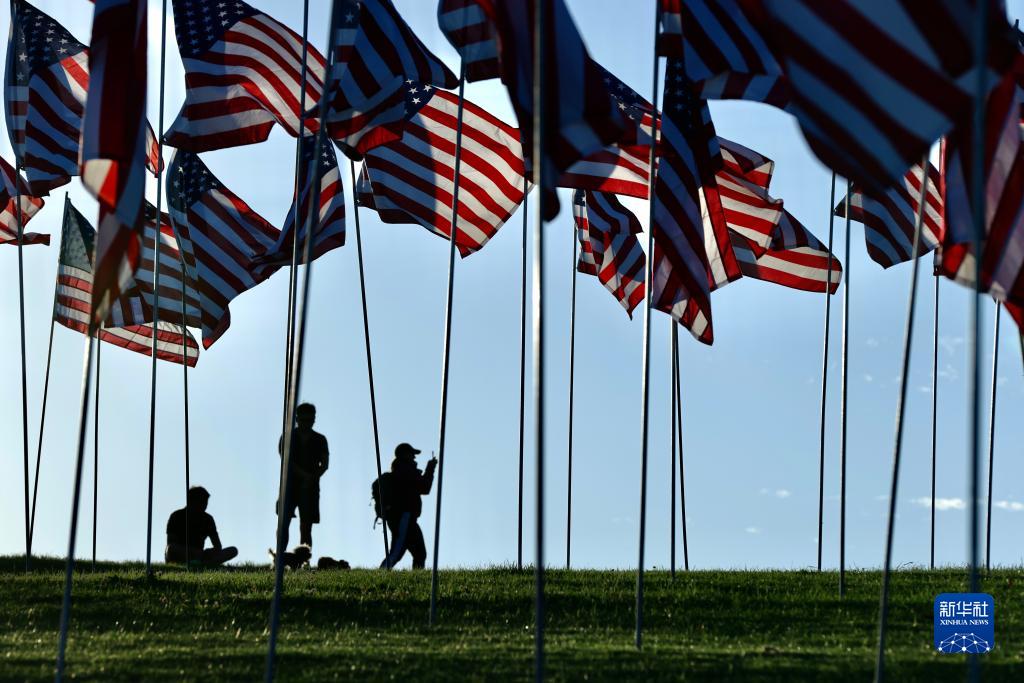 9月10日,人們參觀美國加利福尼亞州馬利布佩珀代恩大學草坪上的“旗?!?。