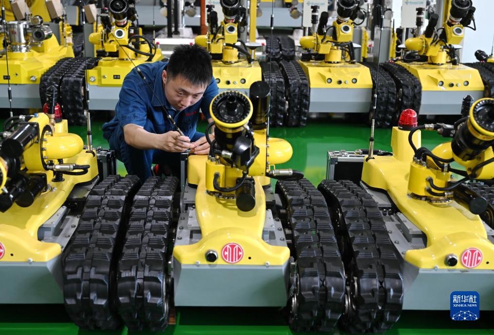 9月11日,工人在唐山國家高新技術產業開發區一家智能裝備生產企業的車間調試特種機器人設備。