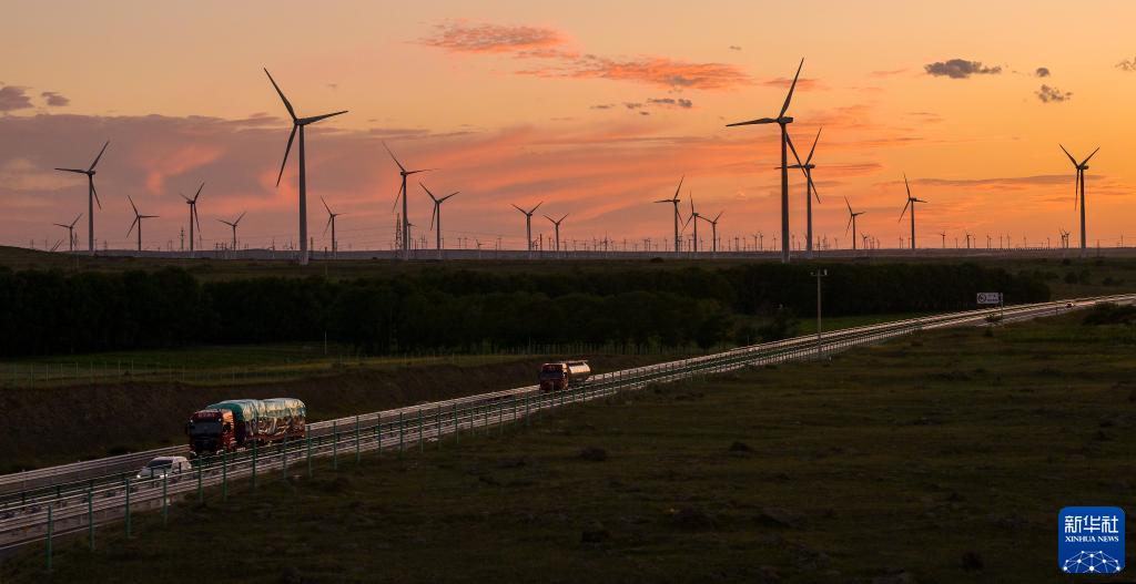 在河北省張家口市張北縣境內拍攝的風力發電機(2023年8月18日攝)。