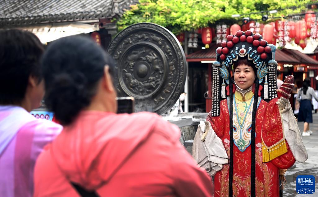 當日,陜西省西安市新城區“遇見城墻·非遺韻”非遺集市主題活動在西安城墻中山門下舉辦。秦腔、華陰老腔等特色非遺節目在永興坊戲樓前輪番表演,皮影、布藝、工藝葫蘆等二十多種非遺作品在順城巷內集中亮相,豐富市民文化生活的同時也讓游客感受到陜西非遺的獨特魅力。