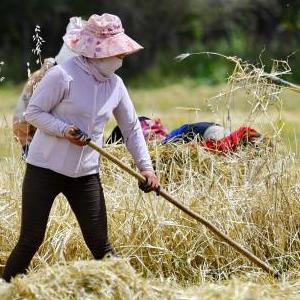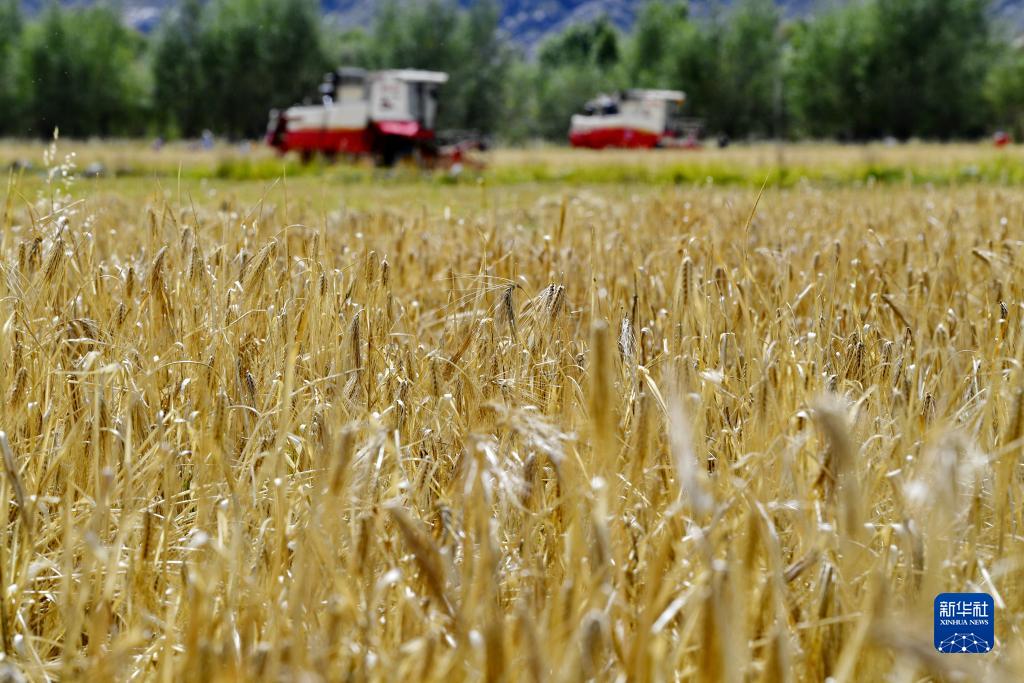 近日,西藏拉薩市曲水縣青稞成熟,人們忙著收割青稞,感受豐收的喜悅。