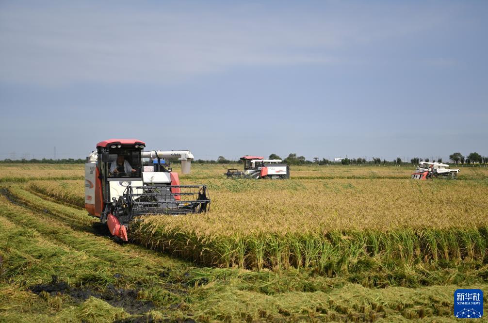 當日,在天津市西青區王穩莊鎮,天津天隆科技股份有限公司種植的近千畝水稻開始集中收割。據了解,此次收割的水稻品種為“天隆優619”,具備早插秧、早收割的特點,比天津本地其他水稻早收割一個月左右。