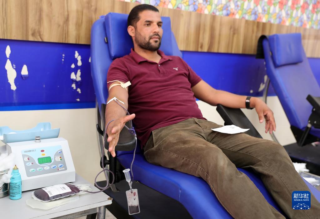 9月12日,一名男子在摩洛哥馬拉喀什一家血液捐獻(xiàn)中心獻(xiàn)血。