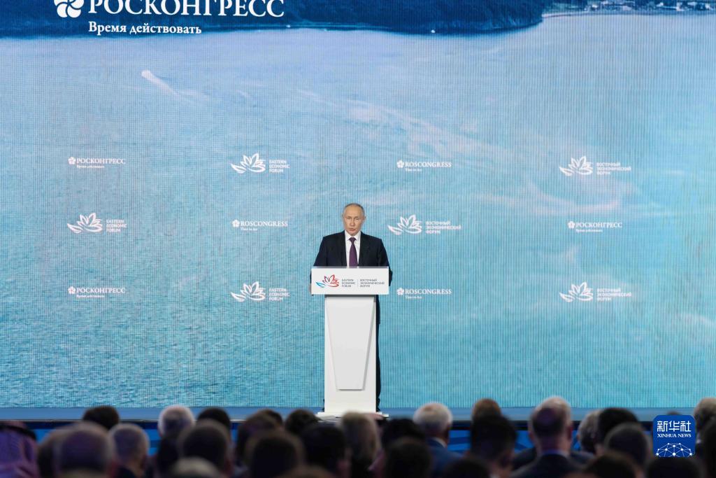 9月12日,俄羅斯總統普京在第八屆東方經濟論壇全體會議上講話。