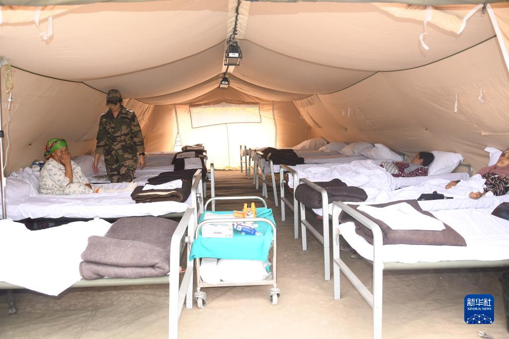 這是9月12日拍攝的位于摩洛哥豪茲省的艾斯尼村的臨時軍事醫院。