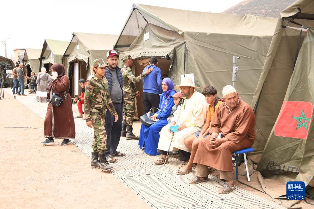 這是9月12日拍攝的位于摩洛哥豪茲省的艾斯尼村的臨時(shí)軍事醫(yī)院。