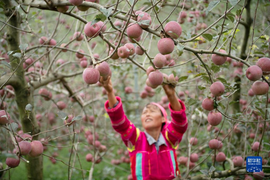9月12日,云南省文山州硯山縣阿舍彝族鄉黑山村的果農在采摘蘋果。