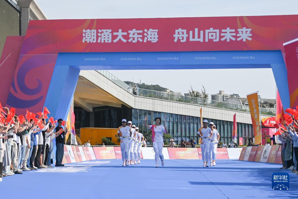 當日,杭州亞運會火炬在浙江省舟山傳遞。