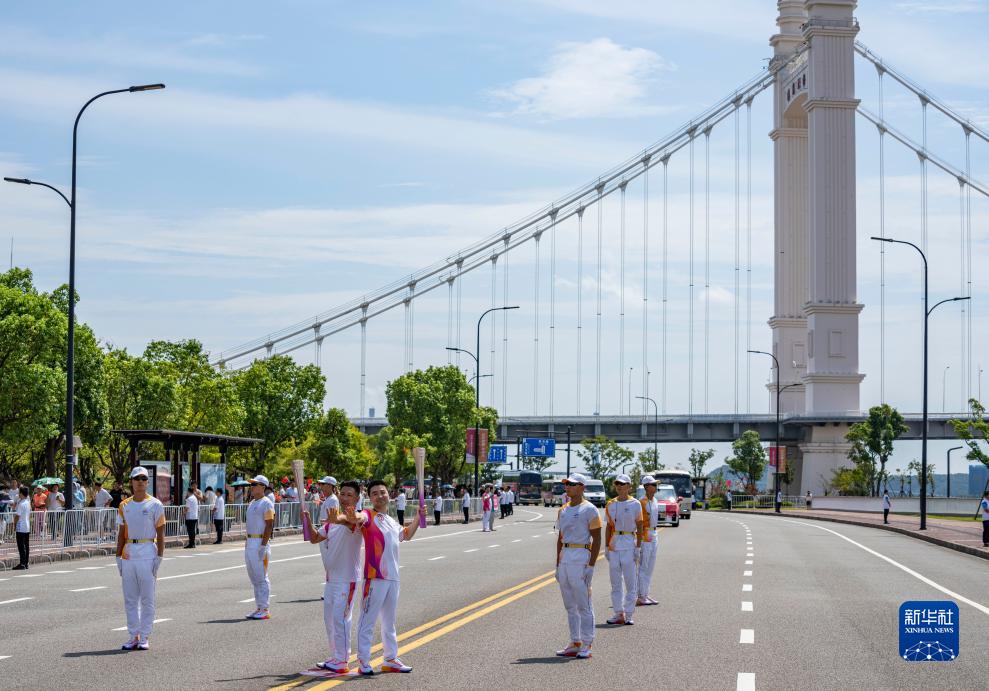 當日,杭州亞運會火炬在浙江省舟山傳遞。