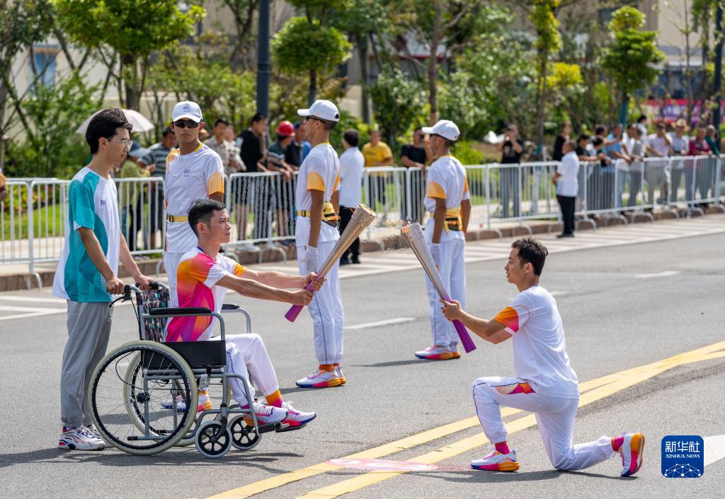 當日,杭州亞運會火炬在浙江省舟山傳遞。