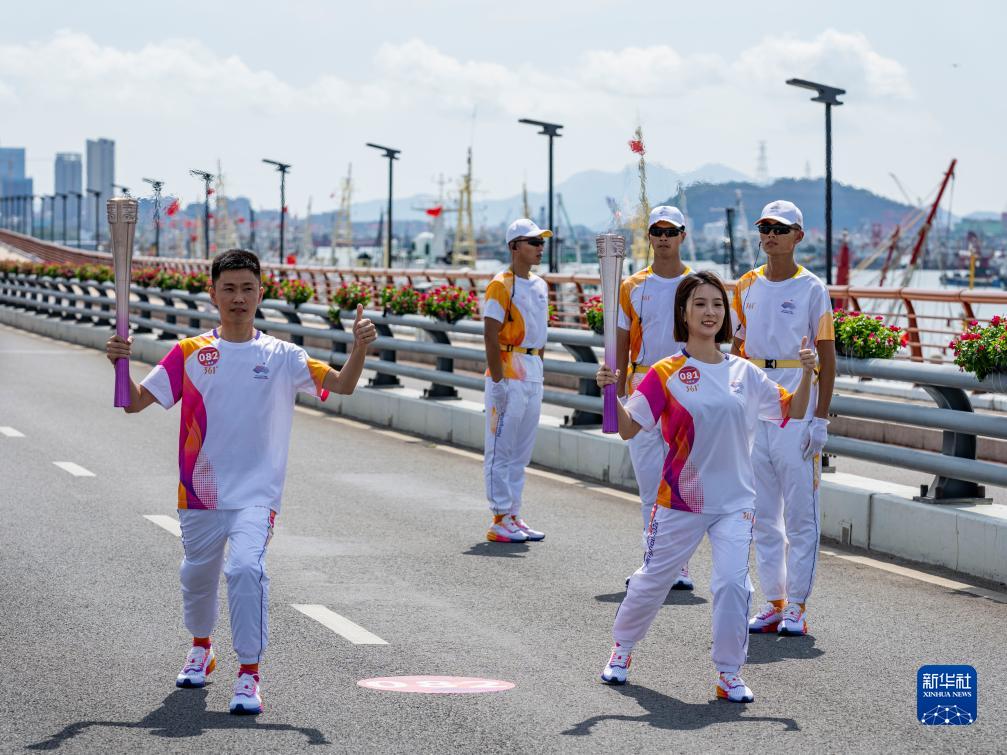 當日,杭州亞運會火炬在浙江省舟山傳遞。