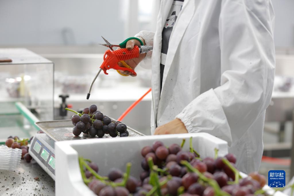 9月12日,句容市丁莊村葡萄合作聯(lián)社分揀中心的工作人員將葡萄整理打包。