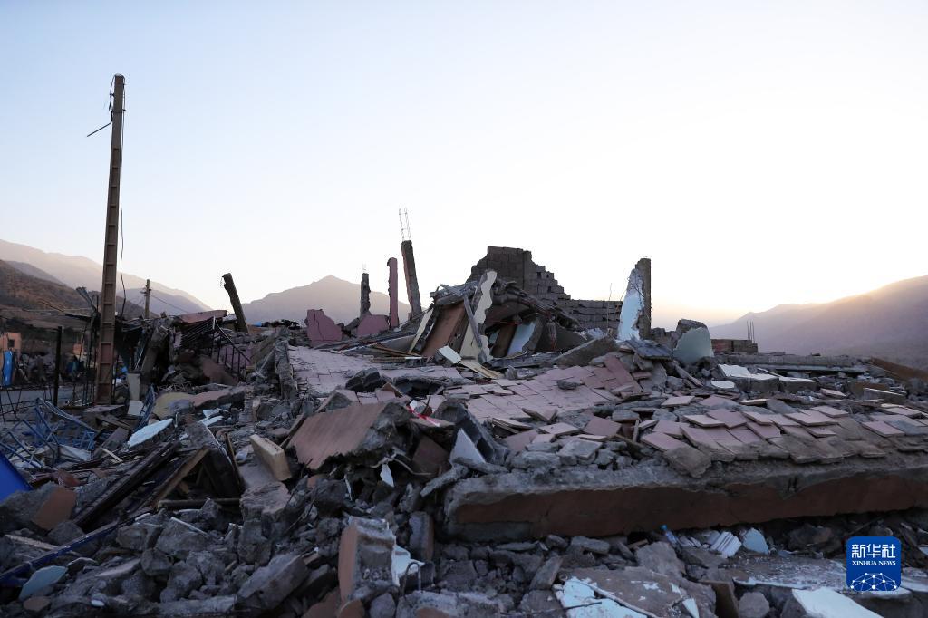 9月12日,在震中區域的摩洛哥豪茲省塔拉特恩雅庫布村,記者拍攝到大量被地震損毀建筑。
