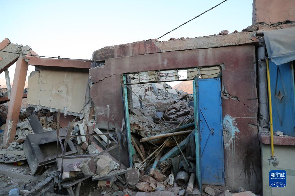 9月12日,在震中區域的摩洛哥豪茲省塔拉特恩雅庫布村,記者拍攝到大量被地震損毀建筑。