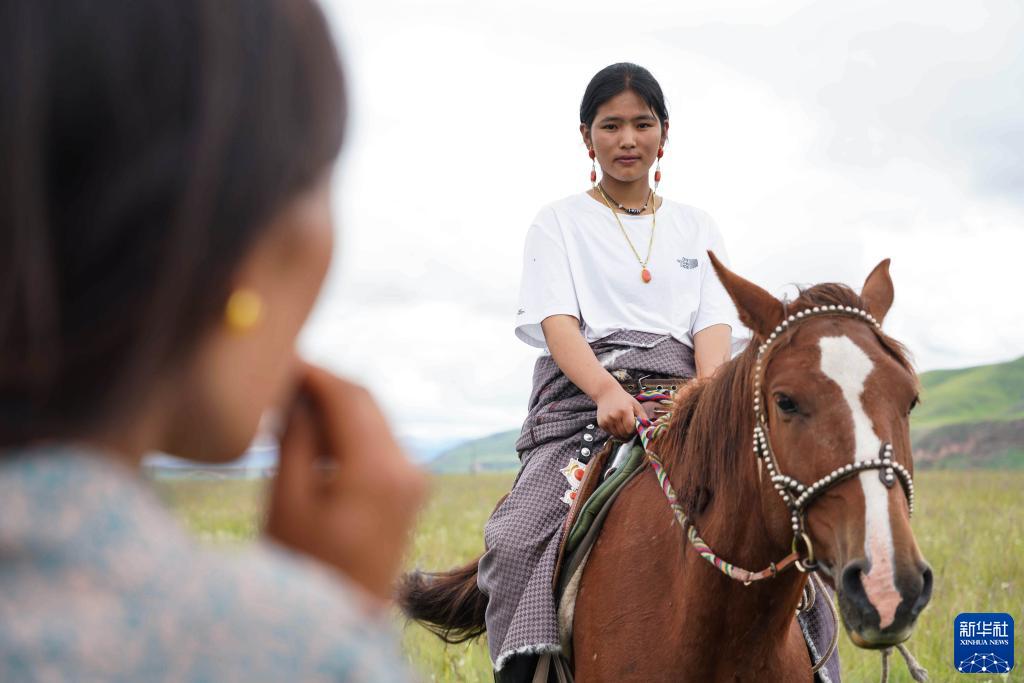 8月17日,在青海省黃南藏族自治州河南蒙古族自治縣多松鄉(xiāng)多松村,扎西曲培的女兒仁青卓瑪(右)在和母親斗格吉聊天。新華社記者 王靜頤 攝