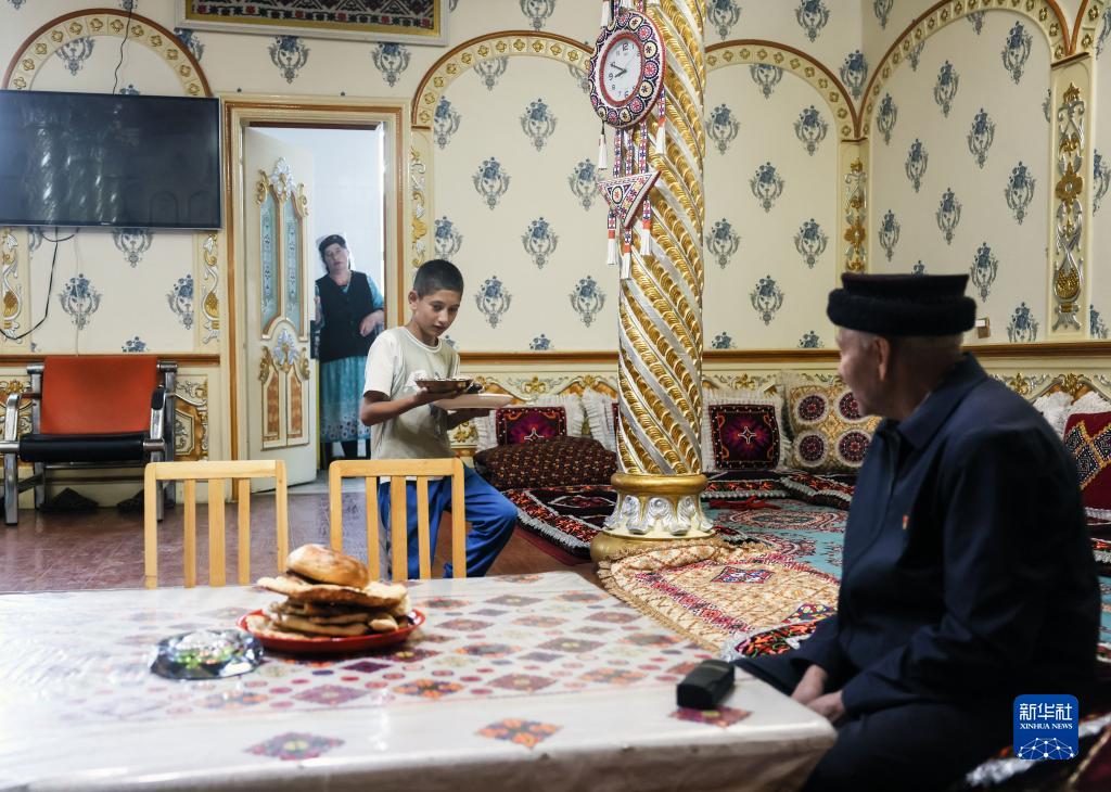 9月5日,巴依卡老人和家人在一起,準備吃晚飯。新華社記者 蘭紅光 攝