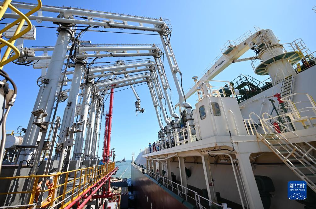 9月13日,來自卡塔爾的“米薩梅爾”號LNG輪靠泊在唐山港曹妃甸港區中國石油唐山LNG接收站碼頭卸載。