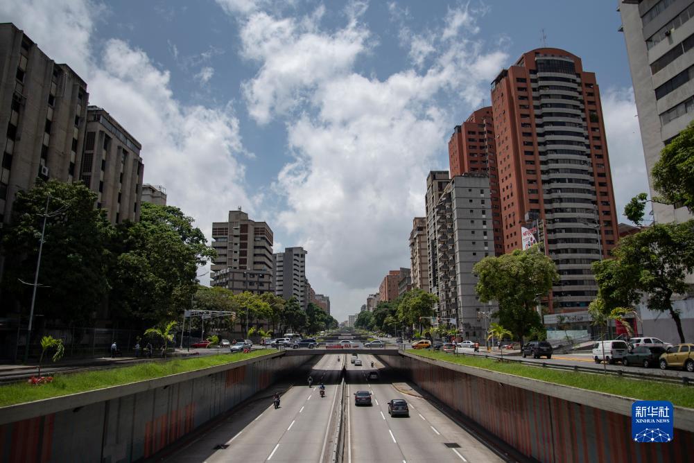 2021年7月20日,車輛在委內瑞拉首都加拉加斯市中心主干道解放者大道上行駛。