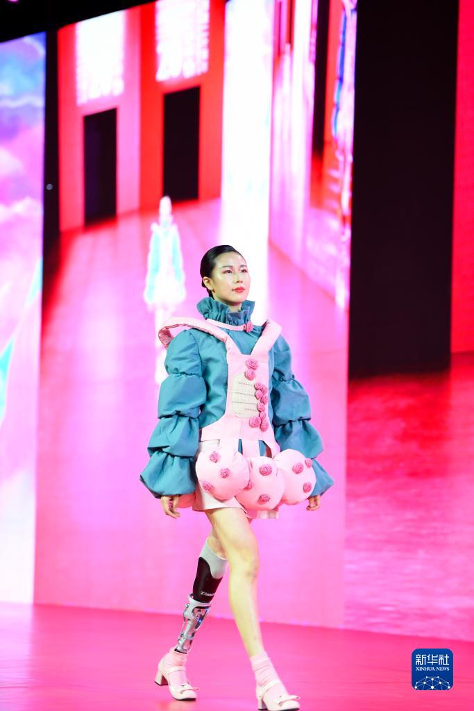 胡月在四川師范大學服裝與設計藝術學院2023優秀畢業作品發布會上走秀(5月27日攝)。新華社記者 唐文豪 攝