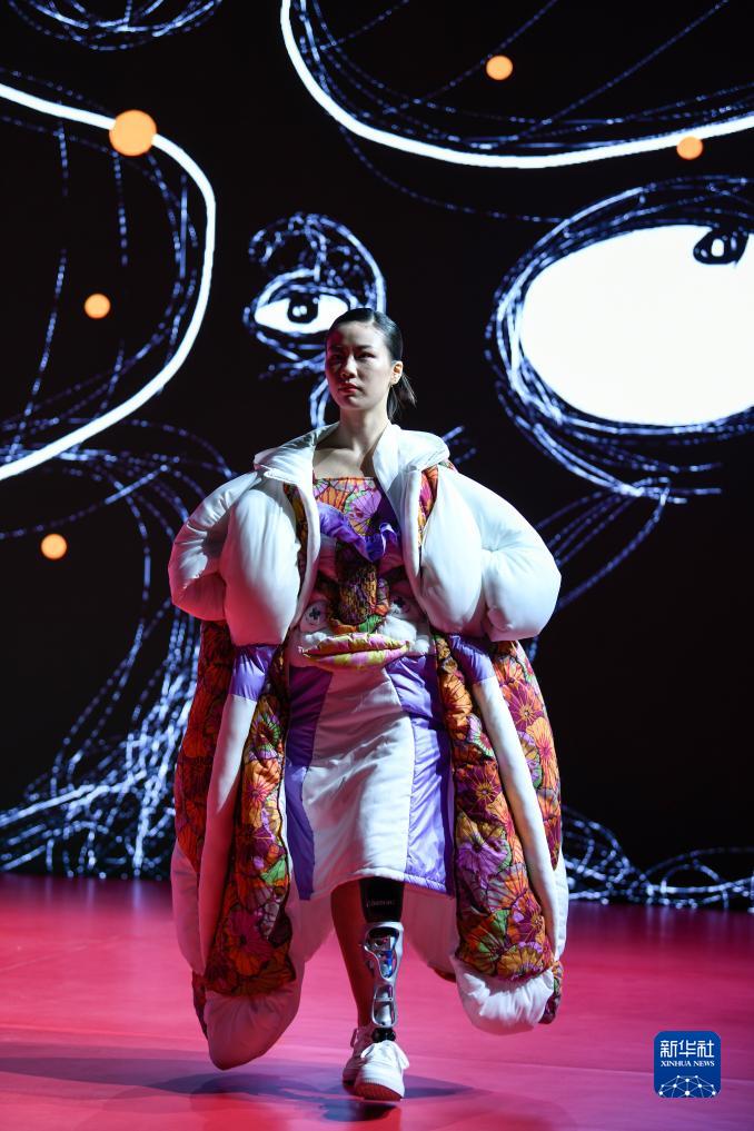 胡月在四川師范大學服裝與設計藝術學院2023優秀畢業作品發布會上走秀(5月27日攝)。新華社記者 唐文豪 攝