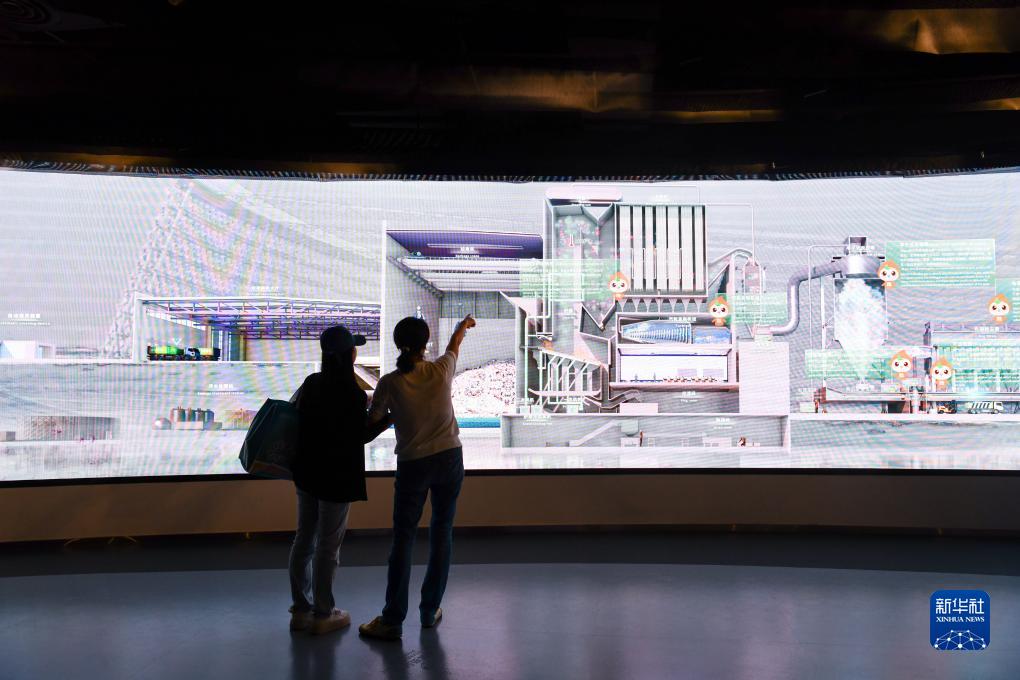 9月13日,觀眾在深圳龍崗能源生態園展廳內了解垃圾處理工藝。