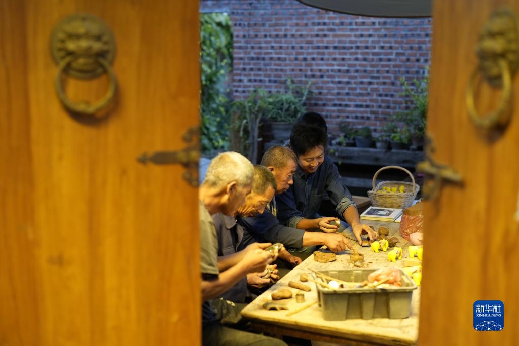 9月13日,市民在河北省樂亭縣一處泥塑工作室內制作泥塑。