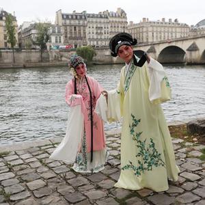作為“文明遇·鑒:中國昆曲江蘇周”系列活動之一,江蘇省演藝集團昆劇院院長施夏明、江蘇省演藝集團昆劇院國家一級演員孔愛萍13日走上巴黎街頭,在著名地標建筑前以“快閃”的方式展示昆曲藝術(shù)。