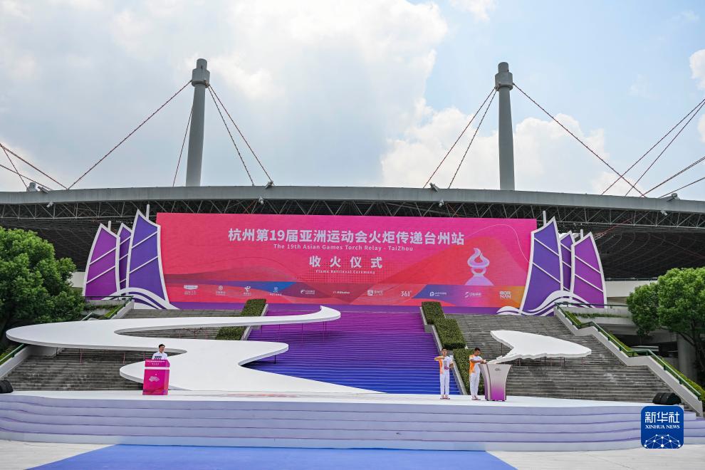 這是杭州亞運會火炬傳遞臺州站收火儀式現場(9月14日攝)。