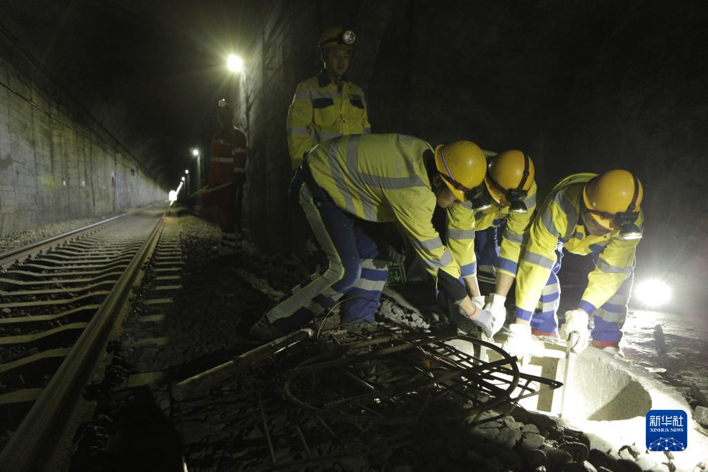 9月13日,在大興安嶺地區(qū)白卡爾隧道,中國鐵路哈爾濱局集團有限公司加格達奇工務段的鐵路工人準備下井,檢查排水系統(tǒng)的暢通情況。
