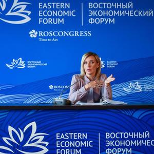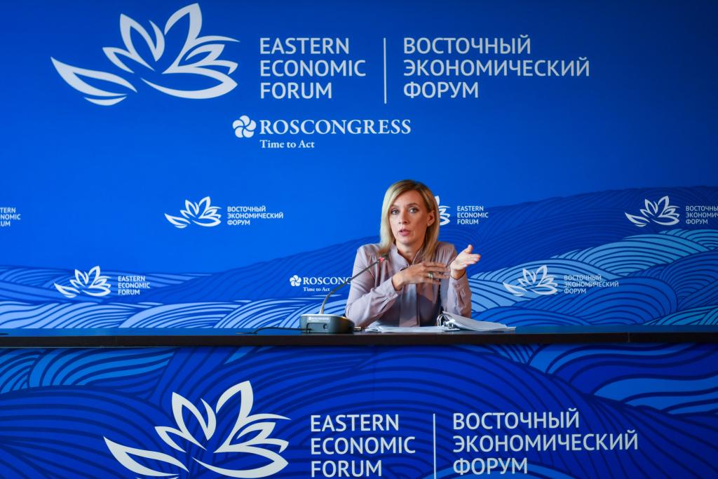 9月13日,俄羅斯外交部發言人扎哈羅娃在符拉迪沃斯托克舉行的新聞發布會上講話。