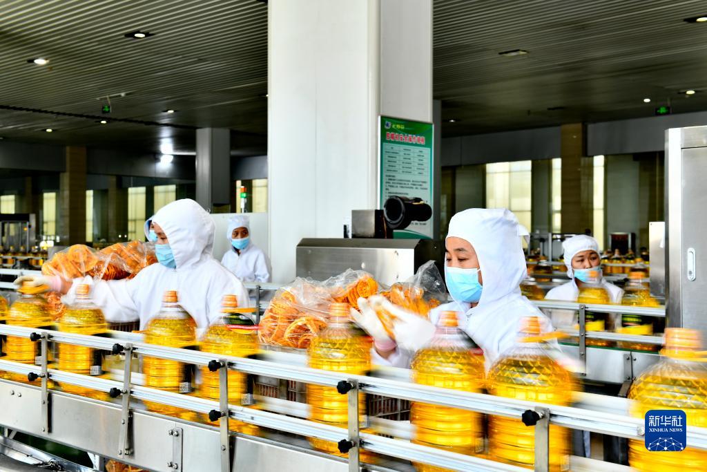 9月13日,在長壽花食品股份有限公司玉米油生產線,工作人員在流水線上作業(yè)。
