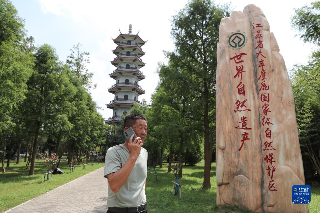 徐安宏在和同事電話溝通(2023年8月21日攝)。1986年,大豐麋鹿自然保護(hù)區(qū)成立,并從英國(guó)引進(jìn)第一批麋鹿,隔年,從事獸醫(yī)工作的徐安宏調(diào)到麋鹿保護(hù)區(qū)工作,只知道“四不像”的他第一次接觸到麋鹿,從此與麋鹿結(jié)緣。30多年來,他一人多崗,忙碌在飼養(yǎng)、巡護(hù)、救助、普法宣傳等工作一線,與保護(hù)區(qū)共發(fā)展共成長(zhǎng)。1998年11月,第一批麋鹿開始野生放養(yǎng),目前野生種群麋鹿已達(dá)到3356頭。新華社記者 楊磊 攝