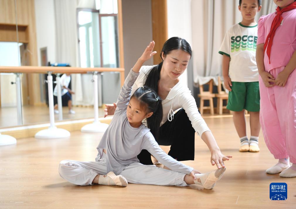 9月13日,雄安史家胡同小學舞蹈老師指導學生練習舞蹈。