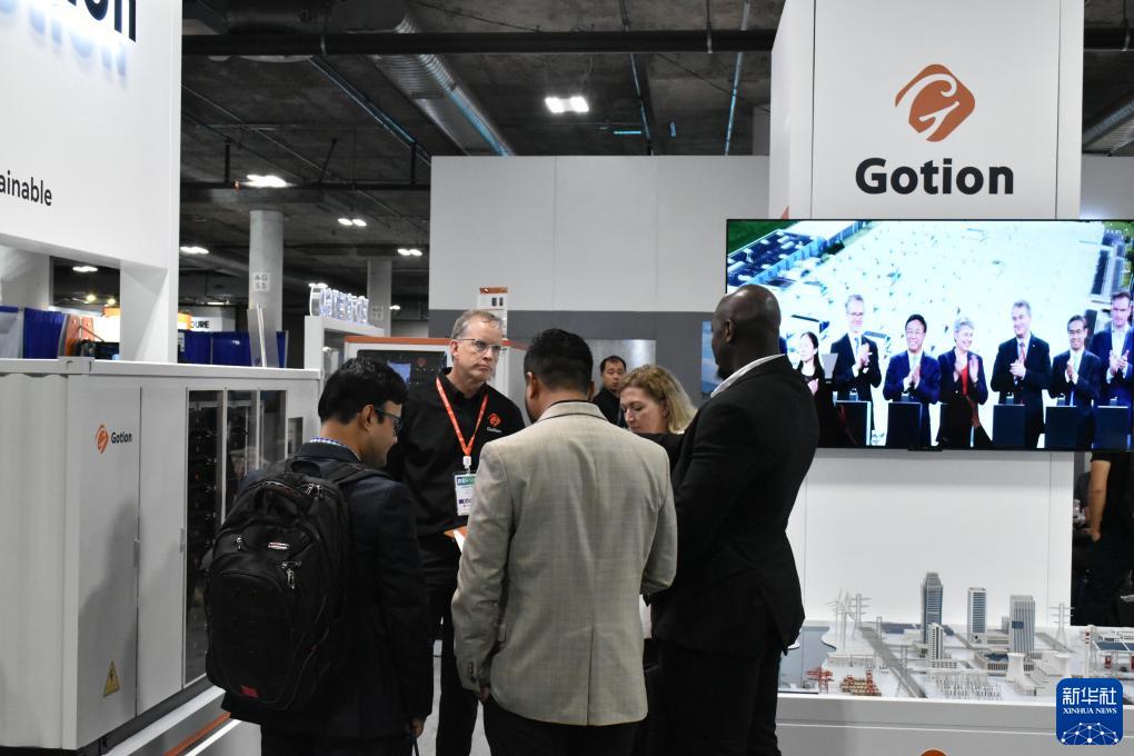 9月12日,人們在美國拉斯維加斯舉行的北美最大清潔能源展會RE+展會上參觀中國企業(yè)國軒高科展區(qū)。