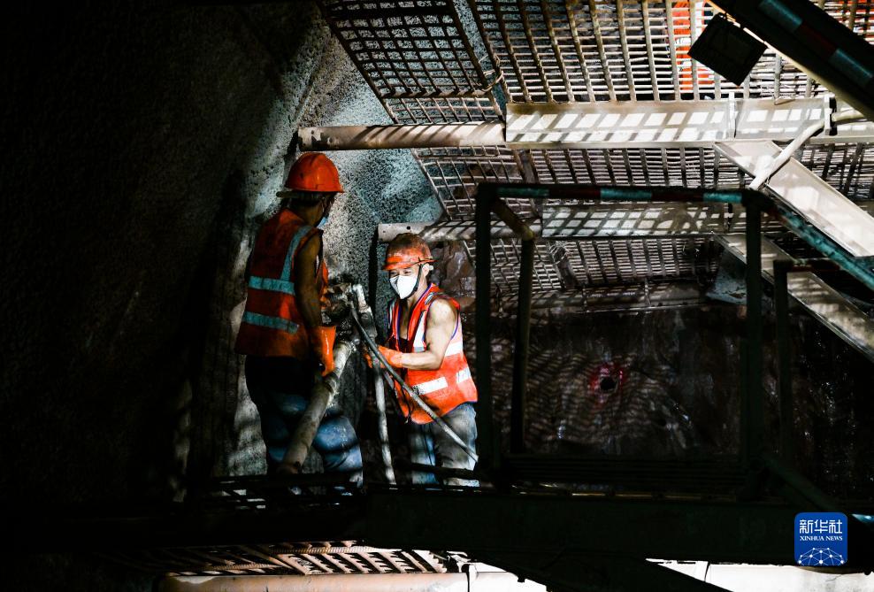 9月14日,工人在渝湘高鐵重慶至黔江段站前3標(biāo)張家山隧道項目作業(yè)。